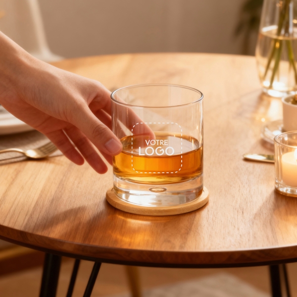 Verre à whisky personnalisé, gravé avec votre logo. Un cadeau parfait pour vos clients, collaborateurs et partenaires, qui valorise votre image tout en offrant un moment unique. Faites de chaque dégustation une expérience mémorable !