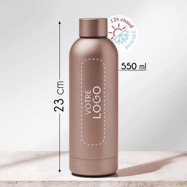 Gourde personnalisée en acier inoxydable, gravée au laser avec votre logo pour une finition durable. Réutilisable et pratique, elle valorise votre marque et s’impose comme un cadeau d’entreprise responsable et mémorable.