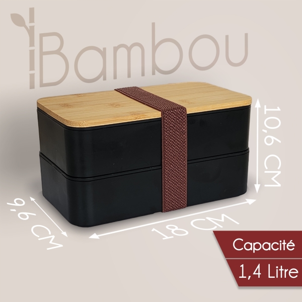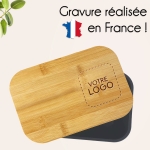 Lunchbox double avec couvercle en bambou personnalisable à votre logo. Alliant praticité et démarche écoresponsable, elle accompagne vos collaborateurs, clients ou partenaires au quotidien. Dotée de deux compartiments, de couverts et d’un séparateur.