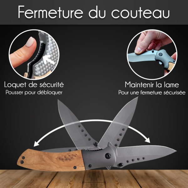 DIMENSION : Le couteau dispose d'une lame de 9,5 cm et d'un manche de 12,5 cm.