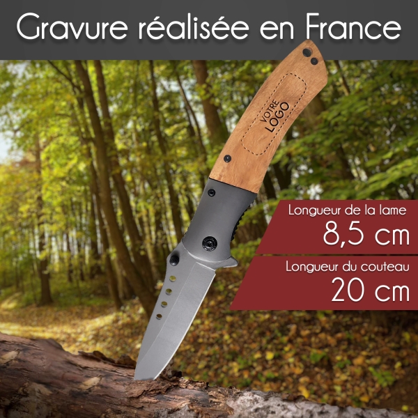 Couteau gravé personnalisé sécurité avec manche en bois avec votre logo