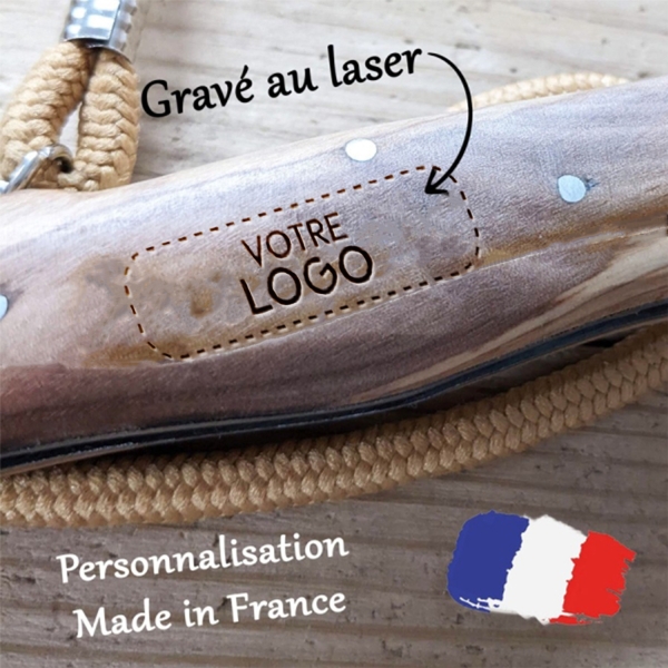 PERSONNALISATION : Le manche du couteau est personnalisable avec le logo de votre choix.