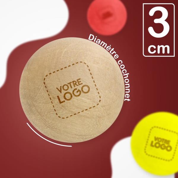 Apportez une touche unique à vos parties de pétanque avec notre lot de cochonnets personnalisés ! Chaque set comprend 3 cochonnets de qualité, en bois durable, dans trois coloris différents (Naturel, jaune & rouge). Nous gravons votre logo directement sur le bois, pour un résultat élégant et durable.