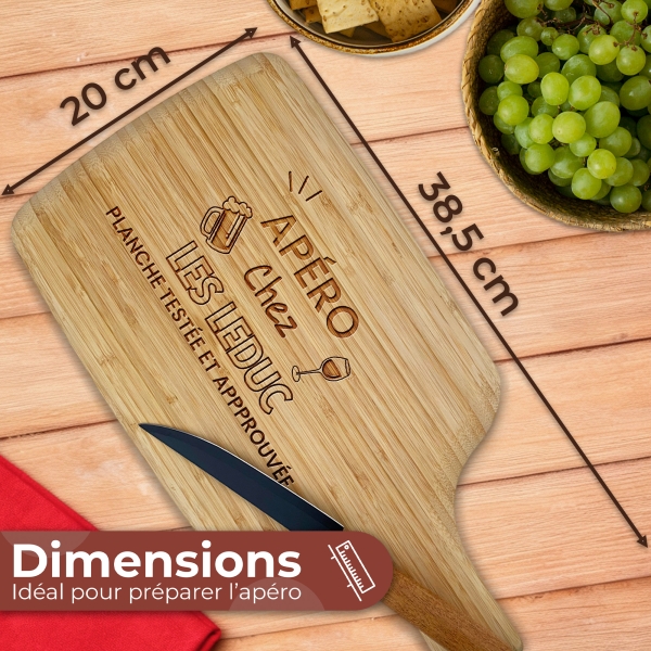 PERSONNALISATION : La planche apéritive est personnalisable avec le texte ou le prénom de votre choix. Avec votre prénom inscrit sur celle-ci, vous obtiendrez un cadeau unique et original pour un anniversaire. Nous réalisons votre cadeau personnalisé dans notre atelier en France en 24h !