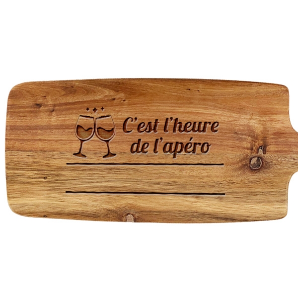 GRAVURE : Réalisée à l'aide d'un laser, vous obtiendrez une gravure de qualité qui ne bougera pas dans le temps. Le bois d'Acacia étant un matériau naturel, la teinte et les veinures de la gravure peuvent être différentes des photos présentées.