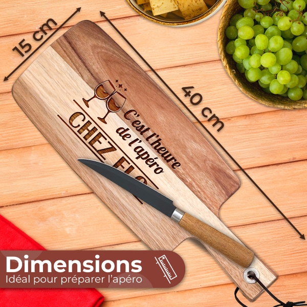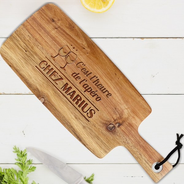 PERSONNALISATION : La planche apéro est personnalisable avec le texte ou le prénom de votre choix. Avec votre texte inscrit sur celle-ci, vous obtiendrez un cadeau unique et original. Nous réalisons votre cadeau personnalisé dans notre atelier en France en 24h !