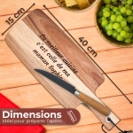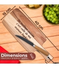Que vous soyez un chef passionné ou un amateur enthousiaste, notre planche à découper personnalisée apportera une touche personnelle à votre cuisine. La gravure sur le bois en acacia en fait un objet de qualité qui sublimera vos préparations culinaires ! Ce modèle vous propose 3 lignes de texte personnalisables.