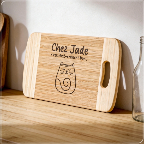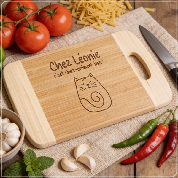 Transformez votre manière d’offrir avec notre planche à découper en bambou personnalisable. Cette planche à découper en bambou n’est pas seulement un accessoire de cuisine mais un cadeau convivial, parfait pour célébrer l’amitié. Que vous cherchiez un cadeau anniversaire, un cadeau collègue original ou une idée cadeau pour une amie, cette planche à découper personnalisée fera toujours son effet.