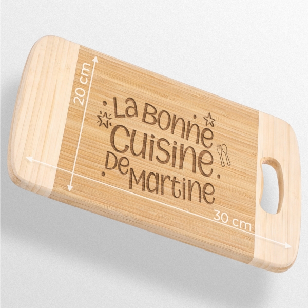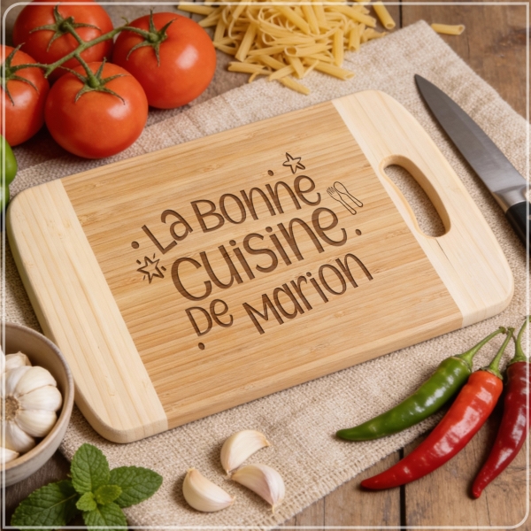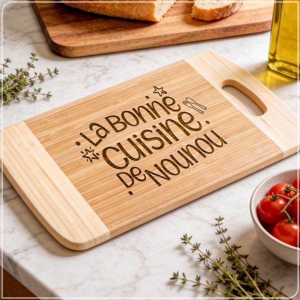 Transformez votre manière d’offrir avec notre planche à découper en bambou personnalisable. Cette planche à découper en bambou n’est pas seulement un accessoire de cuisine mais un cadeau convivial. Cadeau idéal pour pour la fête des mères
