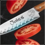 Ce couteau santoku personnalisé est conçu pour ceux qui aiment cuisiner avec de beaux outils. Élégant, précis et agréable à utiliser, il devient encore plus spécial grâce à une gravure personnalisée sur la lame. Un cadeau utile et unique pour un passionné de cuisine, un proche ou pour se faire plaisir.