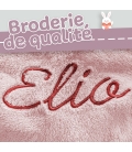 Peignoir de chambre rose pour bébé, à personnaliser avec le prénom de votre choix. C'est une matière polaire ultra douce. La capuche est décorée avec un lapin ce qui en fait une robe de chambre qui séduira à tous les coups ! C'est une belle idée de cadeau à offrir pour différentes occasions comme une naissance, un anniversaire, un baptême, une baby shower, etc.