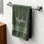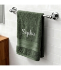 Serviette de bain de couleur Eucalyptus à personnaliser en broderie avec un prénom. Le moelleux va vous séduire dès votre première douche, vous ne pourrez plus vous en passer. Composé d'un liteau aux finitions très soignées. Un cadeau original à offrir pour différentes occasions comme la fête des mères, un mariage, un anniversaire ou encore la Saint-Valentin.