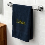 Serviette de bain de couleur Bleu nuit à personnaliser en broderie avec un prénom. Le moelleux va vous séduire dès votre première douche, vous ne pourrez plus vous en passer. Composé d'un liteau aux finitions très soignées. Un cadeau original à offrir pour différentes occasions comme la fête des mères, un mariage, un anniversaire ou encore la Saint-Valentin.