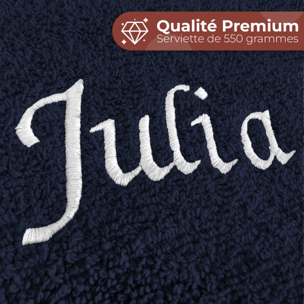 Serviette Bleu nuit luxe personnalisée - 550gr/m²