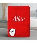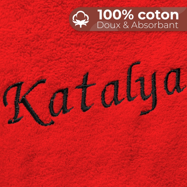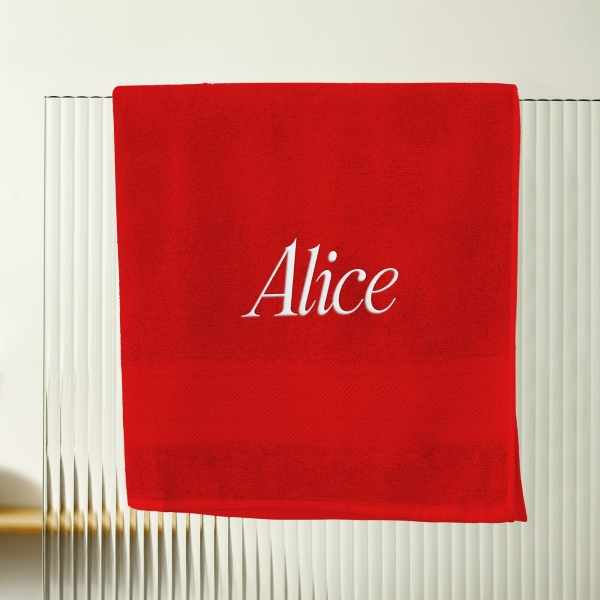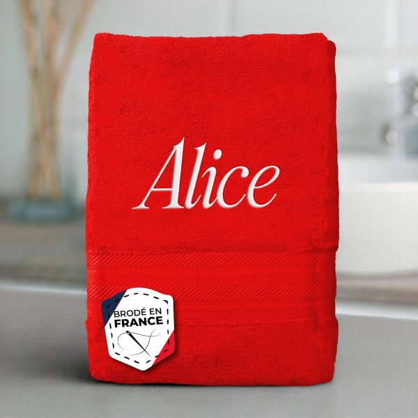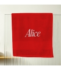 Serviette de bain de couleur rouge rubis à personnaliser en broderie avec un prénom. Le moelleux va vous séduire dès votre première douche, vous ne pourrez plus vous en passer. Composé d'un liteau aux finitions très soignées. Un cadeau original à offrir pour différentes occasions comme la fête des mères, un mariage, un anniversaire ou encore la Saint-Valentin.
