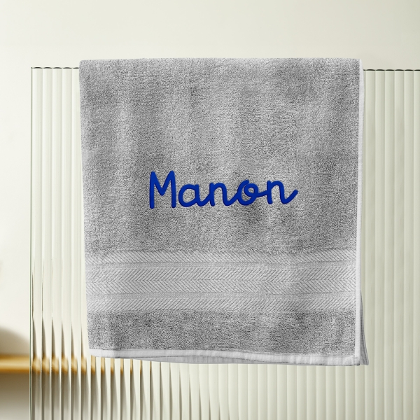 Serviette de bain de couleur Gris perle à personnaliser en broderie avec un prénom. Le moelleux va vous séduire dès votre première douche, vous ne pourrez plus vous en passer. Composé d'un liteau aux finitions très soignées. Un cadeau original à offrir pour différentes occasions comme la fête des mères, un mariage, un anniversaire ou encore la Saint-Valentin.