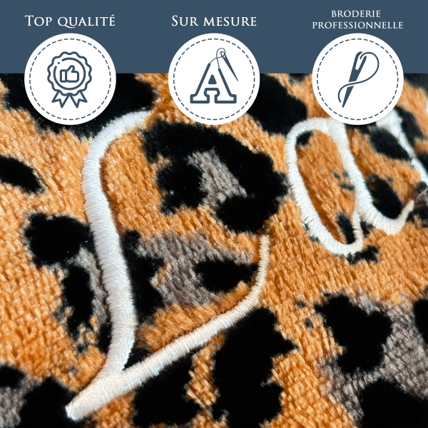 Offrez à votre proche cette couverture à capuche léopard à personnaliser avec le prénom de votre choix. C'est le peignoir idéal pour les frileux grâce à l'intérieure en sherpa pour un maintien optimal de la chaleur. Ce sweat-shirt polaire possède une grande poche pour garder vos mains au chaud ainsi qu'une capuche. Matière polaire ultra doux !