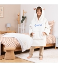 Couverture à capuche ourson blanc brodée