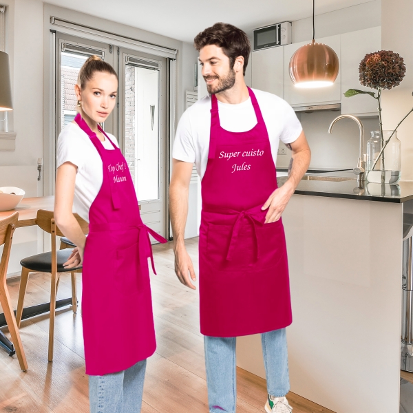 À la recherche d'une idée de cadeau personnalisé pour le chef cuisinier de la maison ? Ce tablier fuchsia est l'option idéale pour ajouter une touche de fun en cuisine ! Personnalisez-le avec un message brodé pour un cadeau unique et original qui surprendra et fera plaisir à coup sûr.