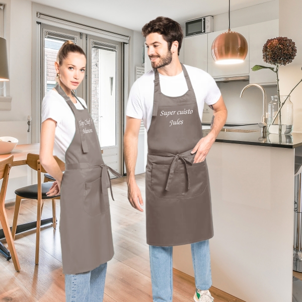 À la recherche d'un cadeau personnalisé pour le chef cuisinier de la maison ? Ce tablier gris, à la fois élégant et pratique, est le choix parfait pour rendre chaque moment en cuisine encore plus spécial. Ajoutez un message brodé pour offrir un cadeau unique et mémorable qui saura surprendre et faire plaisir.