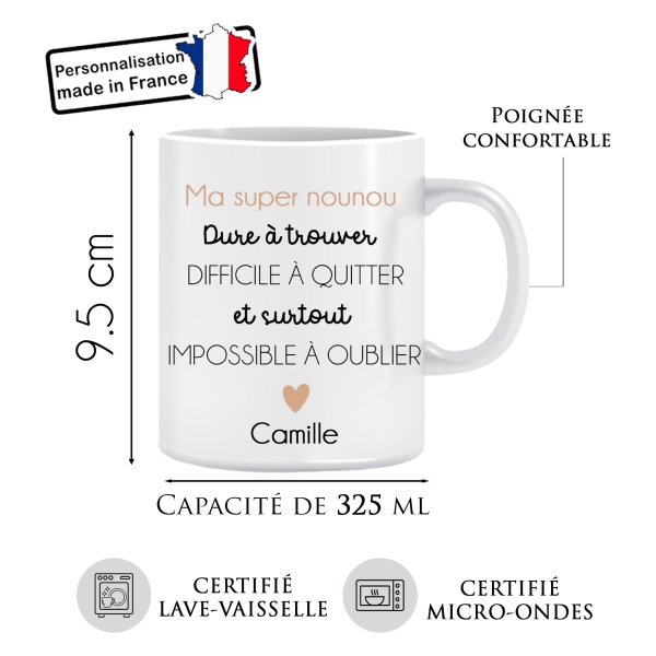 PERSONNALISATION : La tasse est personnalisable avec le texte, le prénom etc...de votre choix. Avec votre personnalisation sur la tasse, vous obtiendrez un cadeau unique et original !