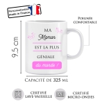 CARACTÉRISTIQUES : Le mug est résistant au lave-vaisselle et au micro-onde.