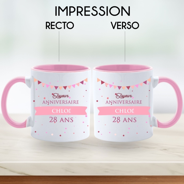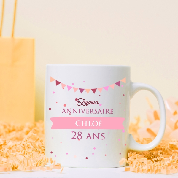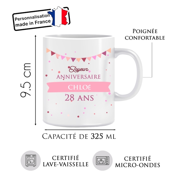 Pour célébrer un anniversaire de manière originale, personnalisez cette tasse avec le prénom et l’âge de la personne. Idéale pour offrir un cadeau unique et personnalisé, que ce soit pour un anniversaire marquant ou simplement pour l’occasion, cette tasse disponible en 7 coloris deviendra un souvenir inoubliable.