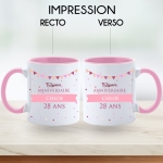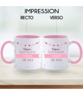 IMPRESSION : Votre personnalisation est imprimée au recto et au verso du mug. Réalisée avec la technique de sublimation, vous obtiendrez une impression en couleur de qualité qui ne bougera pas dans le temps. En effet, votre personnalisation est transférée directement sur la matière.