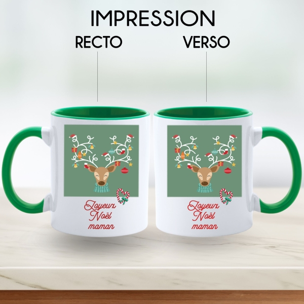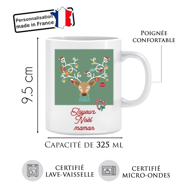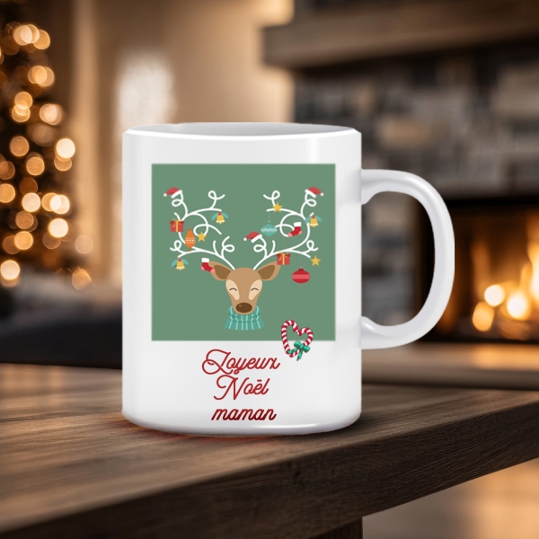 Pour faire plaisir à un proche pendant les fêtes, personnalisez ce mug avec son prénom ou un message spécial. Idéale pour un cadeau original et festif, que ce soit pour célébrer Noël en famille ou simplement pour offrir un souvenir chaleureux, ce mug disponible en 7 coloris sera un présent mémorable et pratique.