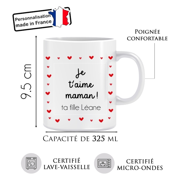 PERSONNALISATION : La tasse est personnalisable avec le texte, le prénom etc...de votre choix. Avec votre personnalisation sur la tasse, vous obtiendrez un cadeau unique et original !