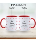 IMPRESSION : Votre personnalisation est imprimée au recto et au verso du mug. Réalisée avec la technique de sublimation, vous obtiendrez une impression en couleur de qualité qui ne bougera pas dans le temps. En effet, votre personnalisation est transférée directement sur la matière.
