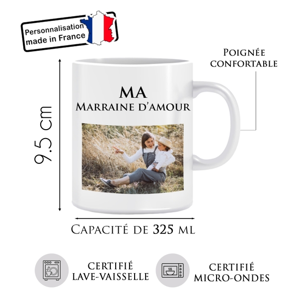 PERSONNALISATION : La tasse est personnalisable avec le texte, le prénom ou la photo de votre choix. Avec votre personnalisation sur la tasse, vous obtiendrez un cadeau unique et original !