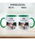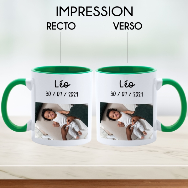 IMPRESSION : Votre personnalisation est imprimée au recto et au verso du mug. Réalisée avec la technique de sublimation, vous obtiendrez une impression en couleur de qualité qui ne bougera pas dans le temps. En effet, votre personnalisation est transférée directement sur la matière.