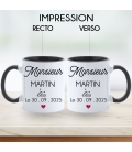 IMPRESSION : Votre personnalisation est imprimée au recto et au verso du mug. Réalisée avec la technique de sublimation, vous obtiendrez une impression en couleur de qualité qui ne bougera pas dans le temps. En effet, votre personnalisation est transférée directement sur la matière.
