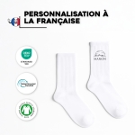 SUBLIMATION : Votre personnalisation est imprimée sur les chaussettes. Réalisée par sublimation, vous obtiendrez un résultat sans surimpression et de qualité qui ne bougera pas dans le temps.