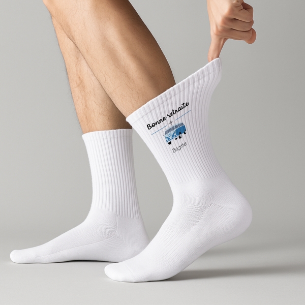 SUBLIMATION : Votre personnalisation est imprimée sur les chaussettes. Réalisée par sublimation, vous obtiendrez un résultat sans surimpression et de qualité qui ne bougera pas dans le temps.