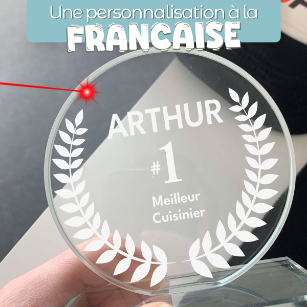 PERSONNALISATION : Le trophée est personnalisable avec le texte de votre choix. Avec votre prénom ou texte inscrit sur celui-ci, vous obtiendrez un cadeau unique et original pour toutes les occasions : Anniversaire, fête des mères, départ en retraite…