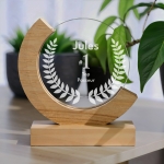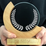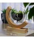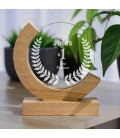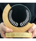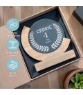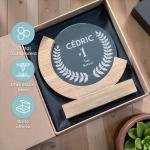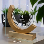 Trophée en verre personnalisé - Modèle rond base bambou - Top 1