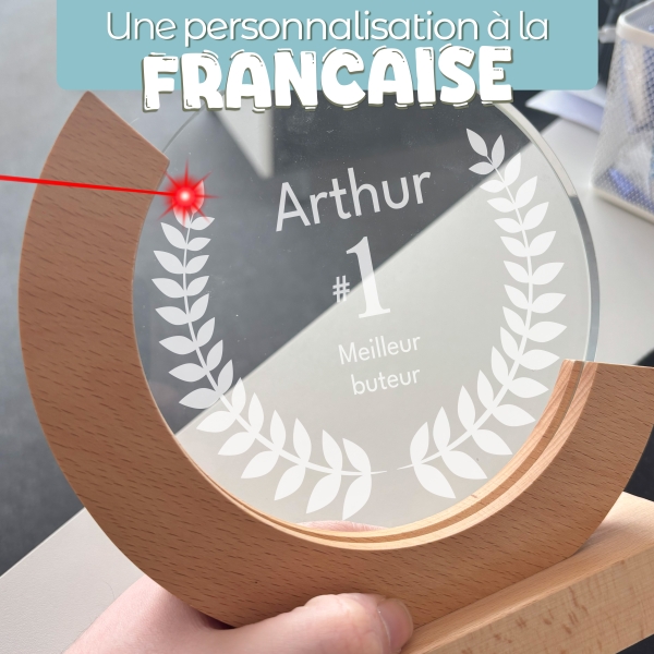 PERSONNALISATION : Le trophée est personnalisable avec le texte de votre choix. Avec votre prénom ou texte inscrit sur celui-ci, vous obtiendrez un cadeau unique et original pour toutes les occasions : Anniversaire, fête des mères, départ en retraite…
