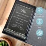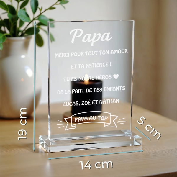 Offrez une attention unique avec cette plaque rectangulaire en verre gravée d’un message personnalisé. Parfaite pour exprimer votre amour et votre reconnaissance envers un proche : maman, papa, grand-parent ou simplement pour écrire un message qui à de la valeur à vos yeux. Son élégance intemporelle et sa personnalisation en font un cadeau touchant pour un anniversaire ou toute occasion spéciale.