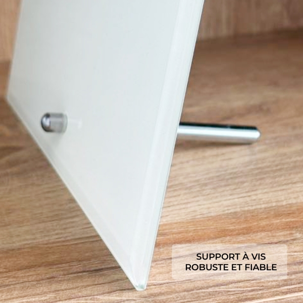 MATIERE : Le cadre est en verre. Le support en acier inoxydable.