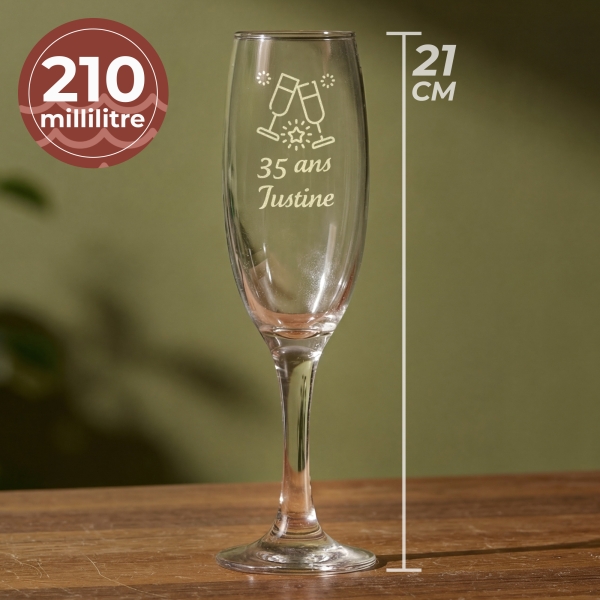 Célébrez chaque moment spécial avec notre verre à champagne personnalisé, gravé avec soin pour une touche unique. Idée cadeau parfaite pour célébrer un anniversaire, fête de fin d'année, ce verre à champagne gravé ajoute une élégance inégalée à chaque toast. Offrez un souvenir mémorable avec ce cadeau raffiné.