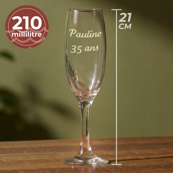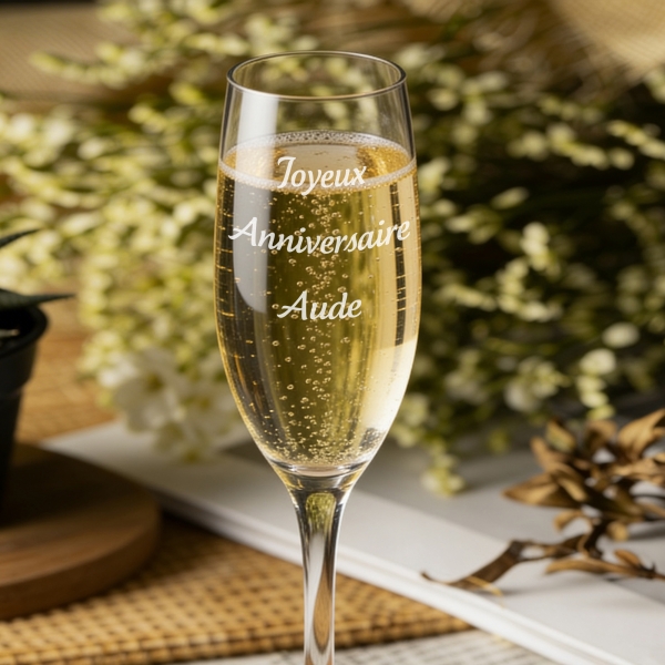 Célébrez chaque moment spécial avec notre verre à champagne personnalisé, gravé avec soin pour une touche unique. C'est l'idée cadeau parfaite pour un mariage, un anniversaire ou une fête de fin d'année, ce verre à champagne gravé ajoute une élégance inégalée à chaque toast. Offrez un souvenir mémorable avec ce cadeau raffiné.