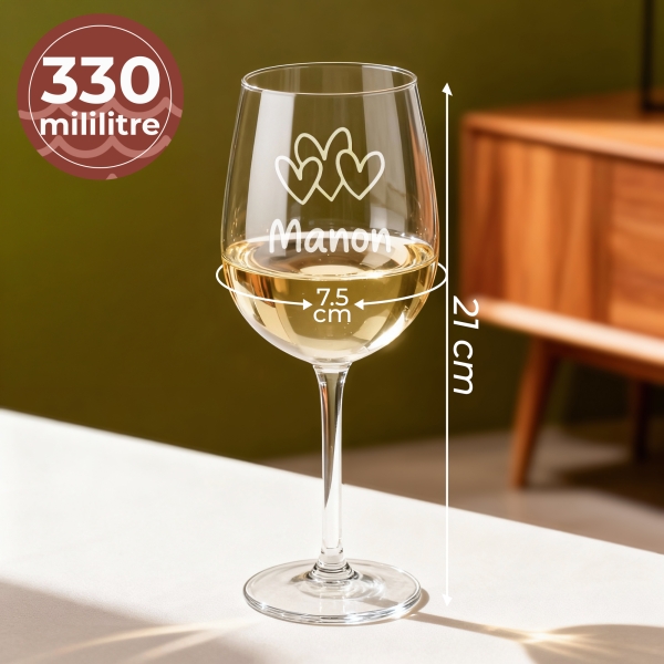 Découvrez notre verre à vin personnalisé, gravé avec soin avec votre texte pour une touche unique. Parfait comme idée cadeau, ce verre élégant et sophistiqué rendra chaque occasion mémorable. Offrez un souvenir durable avec un verre à vin gravé, idéal pour les amateurs ou les connaisseurs de vin. C'est le cadeau personnalisé idéal pour Saint-Valentin !